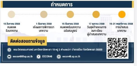 ขยายวันรับบทความถึงวันที่ 15 สิงหาคม 2568 นี้ในงาน EECON48 #EECON48